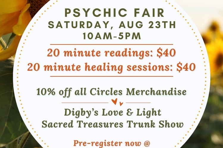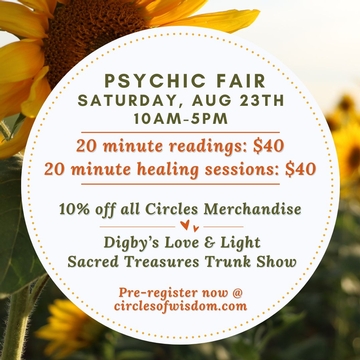 Saturday, January 3Celebrate the start of 2026 with Circles of Wisdom and With Love and Gratitude! Get a 20-minute reading for $20 and/or a 20-minute group healing for $15.
