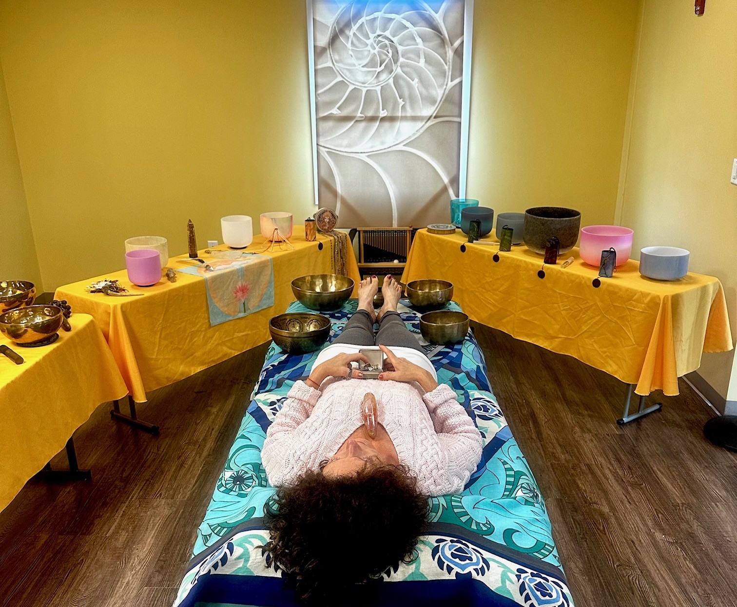 You will be immersed in a quantum vibrational healing field created by a 36” cosmic gong and an orchestra of crystal and Himalayan bowls and other sacred healing tools. This powerful vibration will connect deeply at the cellular level of your body and assist in bringing your physical, emotional, spiritual and etheric bodies into a state of divine harmonic resonance. You may feel this at the physical level as an energetic “reset” and clearing of all that no longer serves you.