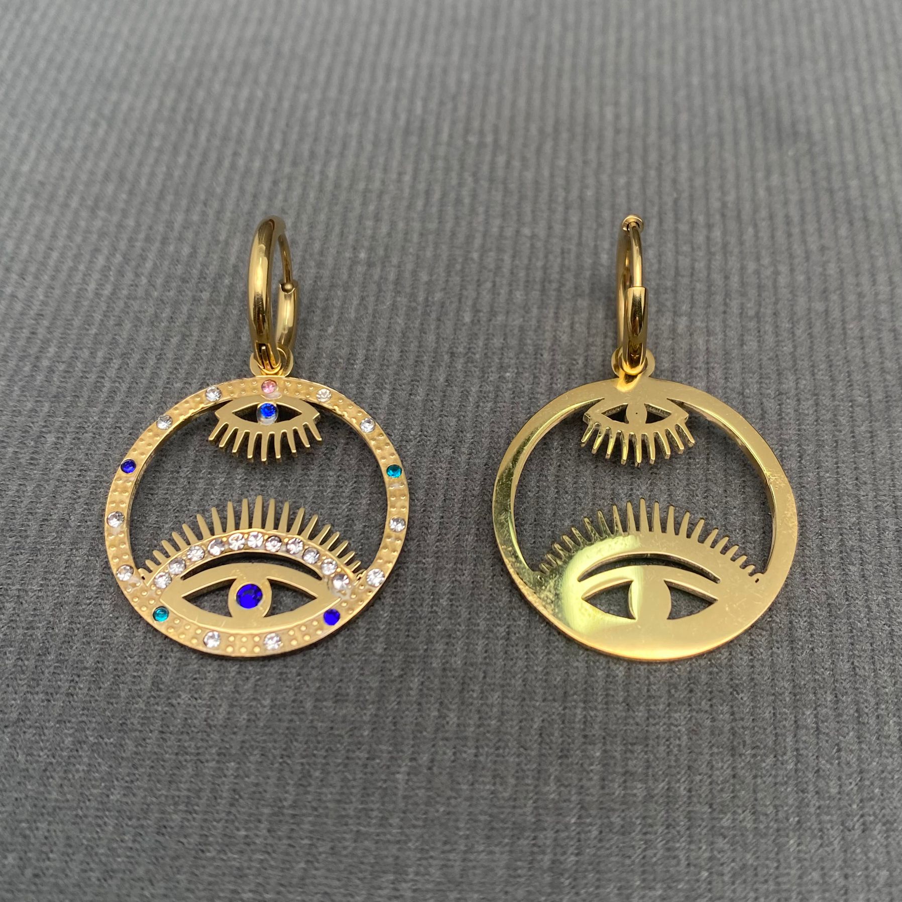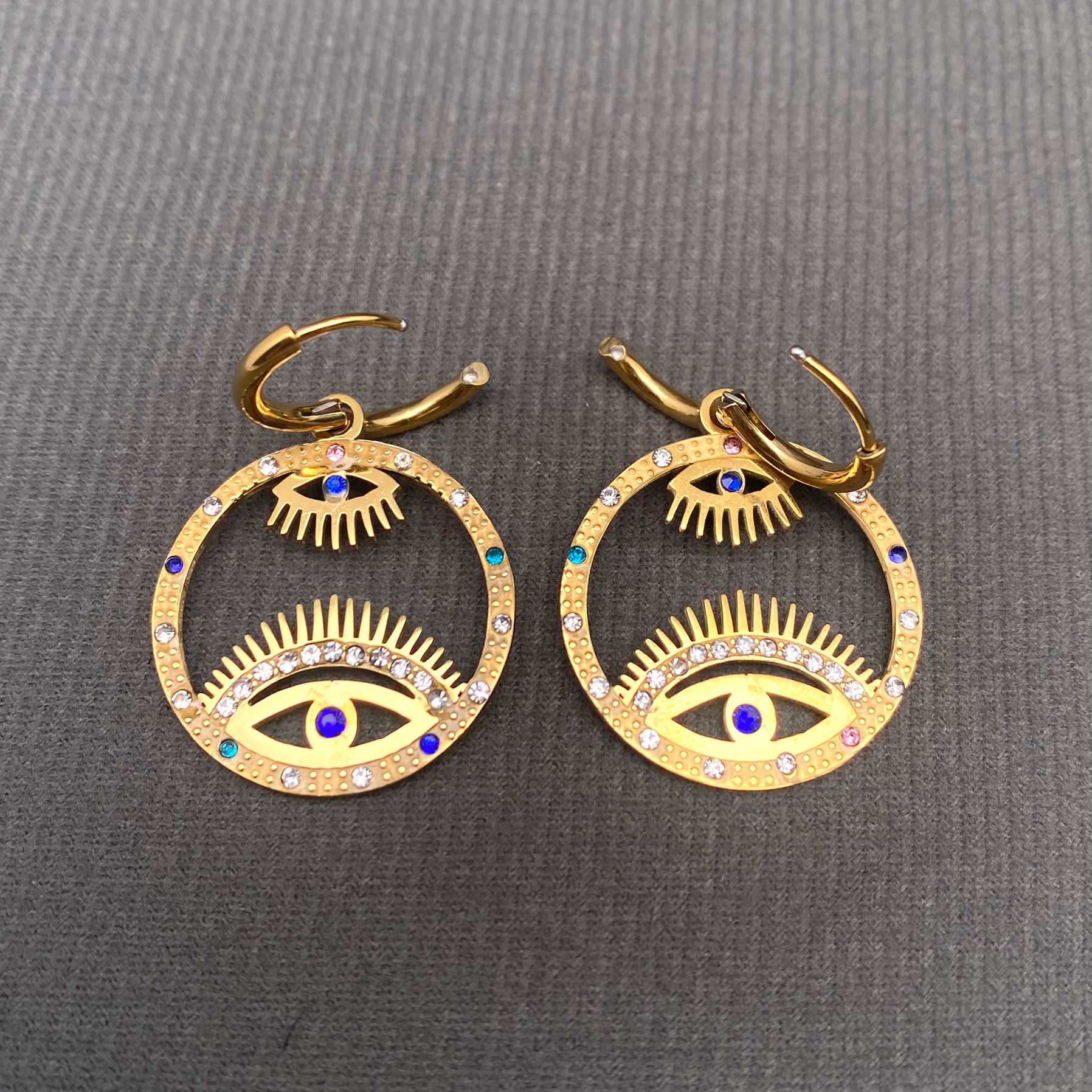 Crafted in high-polish, non-tarnish stainless steel with 18K gold plating, these earrings are lightweight yet statement-making—perfect for elevating everyday looks or adding a touch of mystic glamour to evening wear.