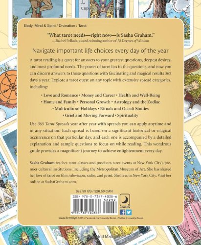 Use 365 Tarot Spreads year after year with spreads you can apply anytime and in any situation. Each spread is based on a significant historical or magical occurrence on that particular day, and each one is accompanied by a detailed explanation and sample questions to focus on while reading. This wondrous guide provides a magnificent journey to achieve enlightenment every day.