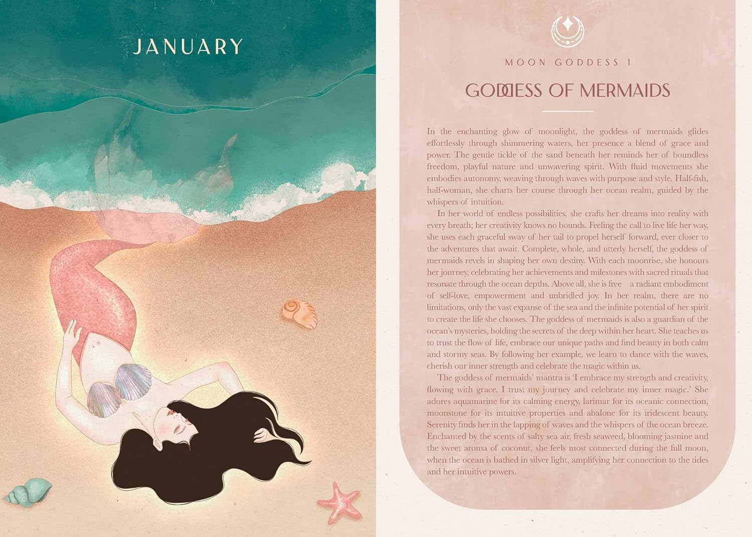 • Monthly pages introducing a beach goddess to guide your month