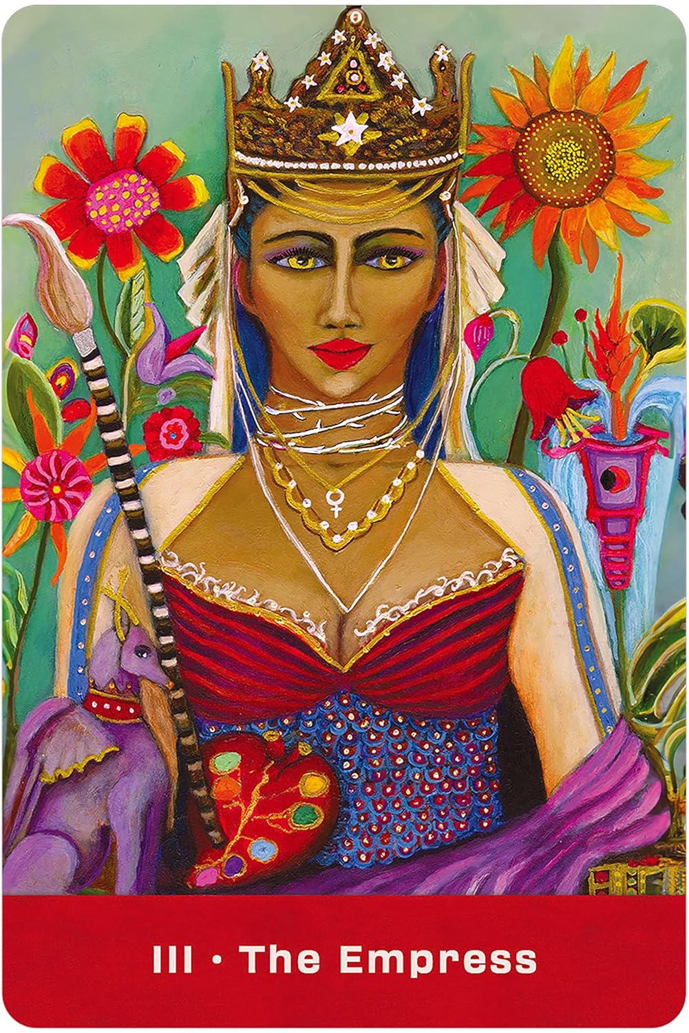The 79-card deck pulsates with world rhythms and delivers uniquely imagined stories. Minor Arcana suits are replaced with artist tools, from paintbrushes to piano keys. Give your imagination the freedom to play with new shades and hues as you embark on your own inspirational tarot journey.