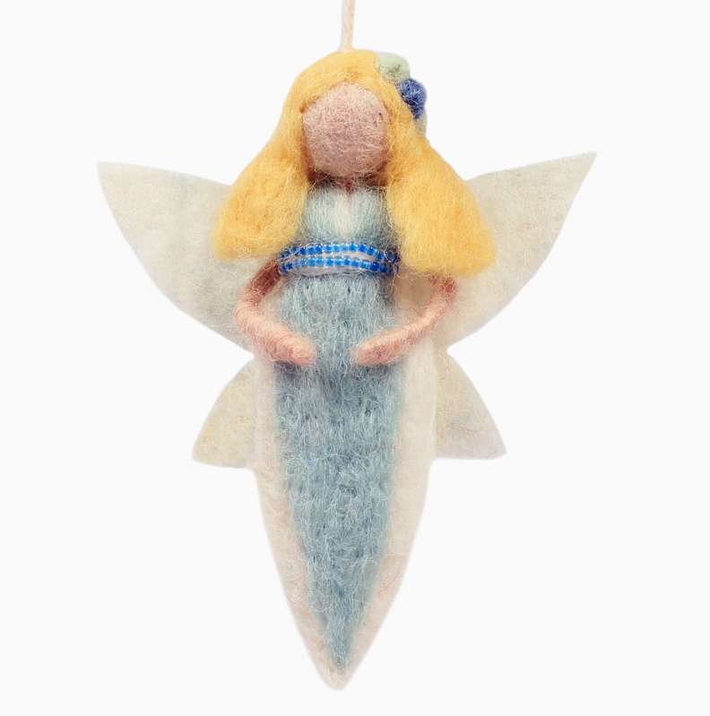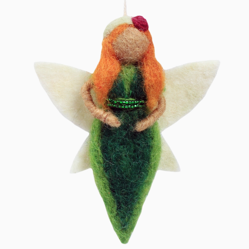 Bendable arms, charming details, plus high-quality Fair Trade handwork make this hand-felted ornament extra special. Artisans in Nepal use 100% natural wool and non-toxic dyes to assemble keepsake gifts. A festive Fair Trade Home & Garden tag hangs from a 3" hanging loop.