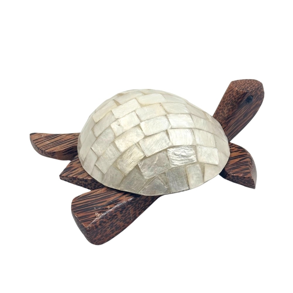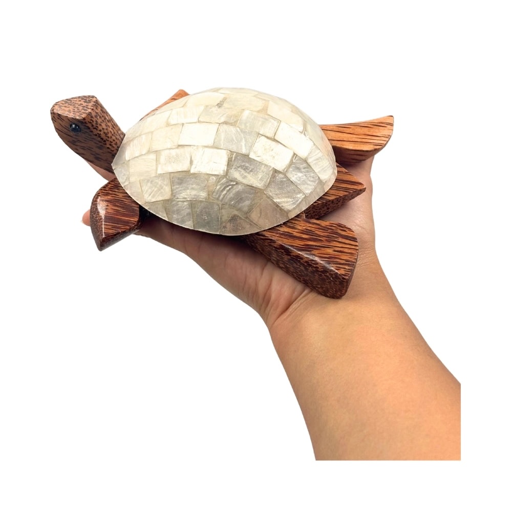 The shell, finished with a luminous inlay, lifts to reveal a hidden compartment ideal for rings, crystals, or keepsakes. Turtles are often seen as symbols of longevity, protection, and steady wisdom, making this piece as meaningful as it is functional.