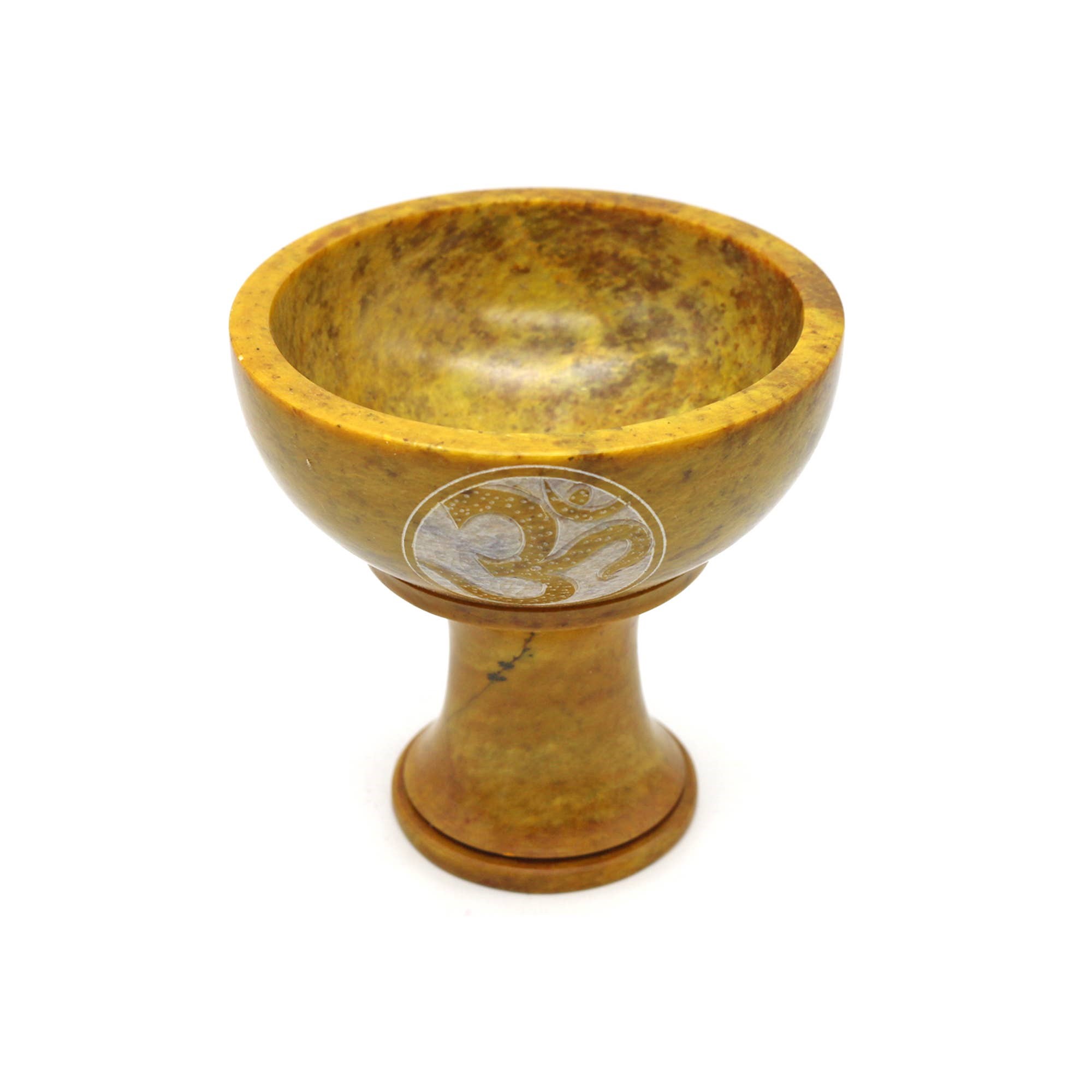4" x 3.5" Hand Carved Soapstone Smudge Bowl with Stand Yellow OM Soapstone Smudge Bowl, a harmonious fusion of functionality and artistic elegance.
