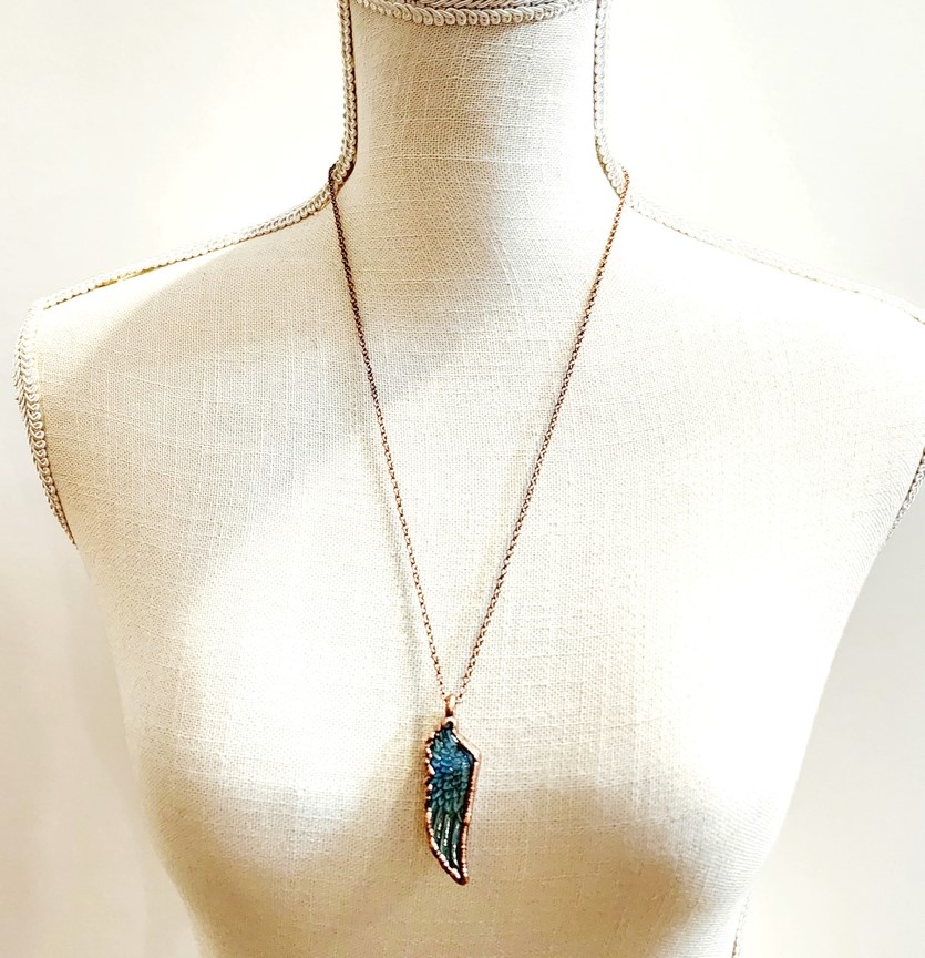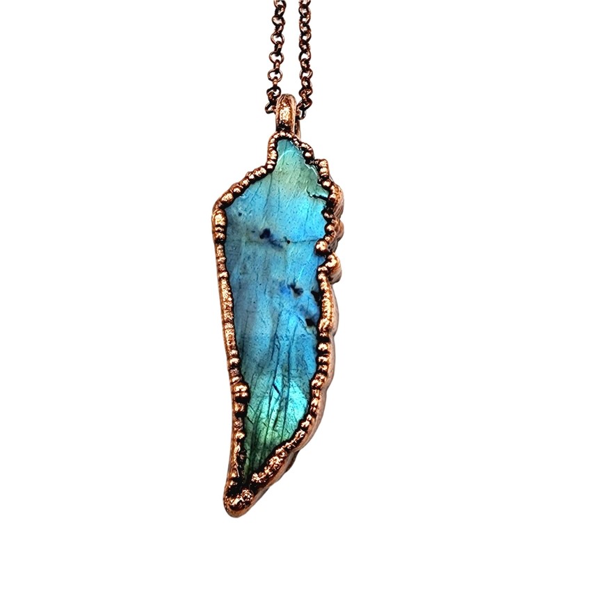 One copper electroformed Carved Labradorite Wing complete on a 24" soldered copper chain.