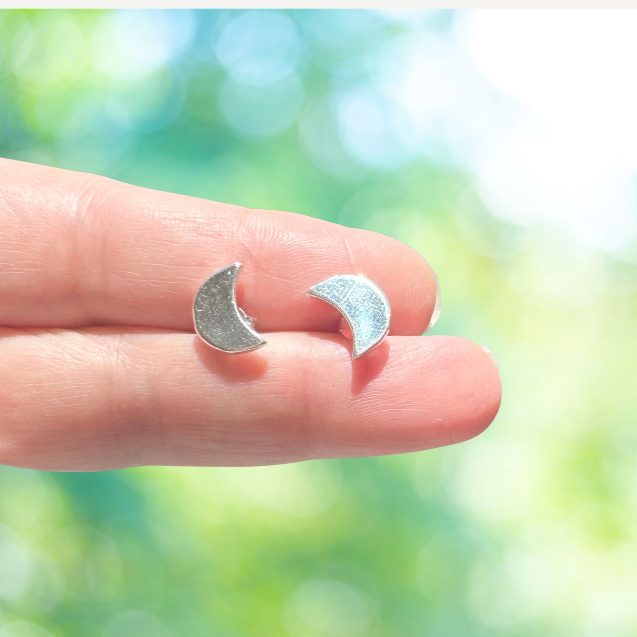 Sterling Silver Moon Stud Earrings