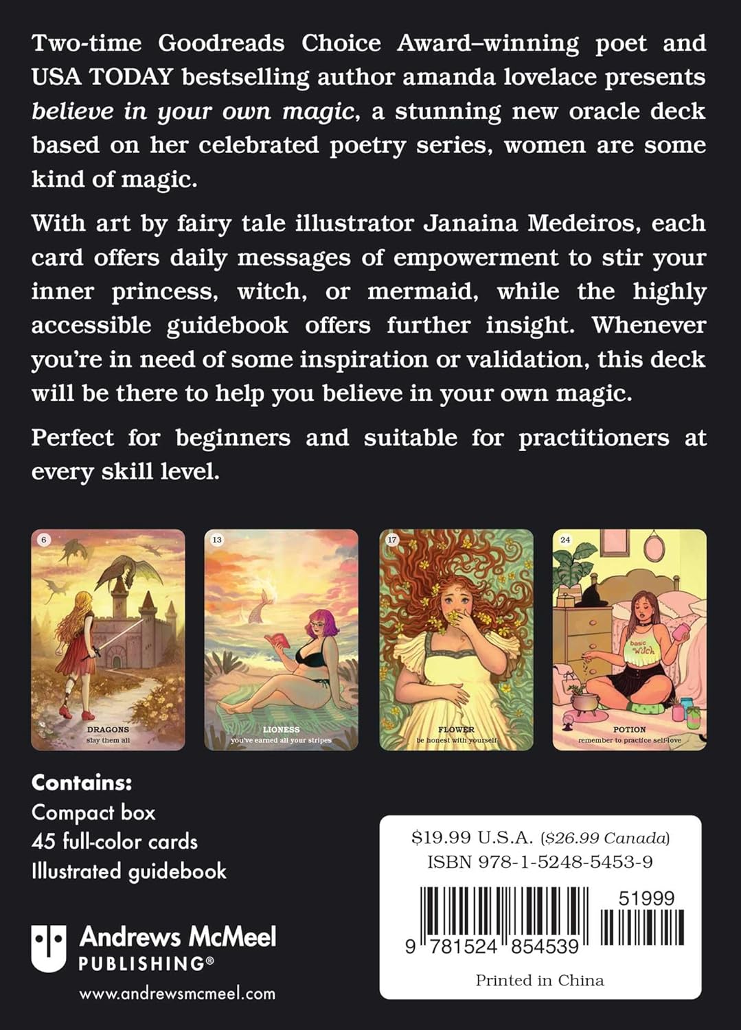 Two-time Goodreads Choice Award-winning poet and USA TODAY bestselling author Amanda Lovelace presents Believe in Your Own Magic, a stunning new oracle deck based on her celebrated poetry series, “women are some kind of magic.”