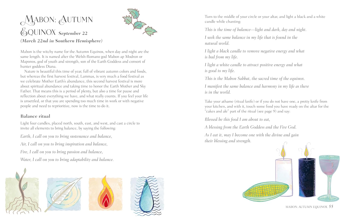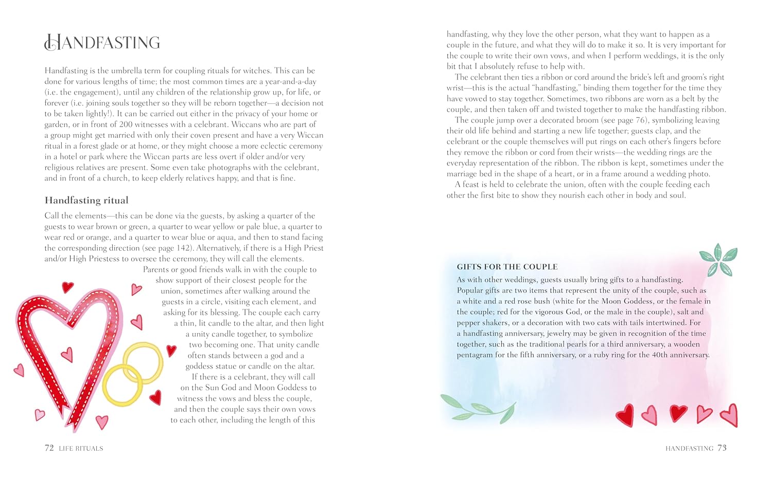Also included are life rituals to celebrate personal rites of passage the witchy way, such as welcoming a new baby into the community with a naming ceremony, or committing yourself to your significant other through a handfasting, known as a Wiccan wedding.