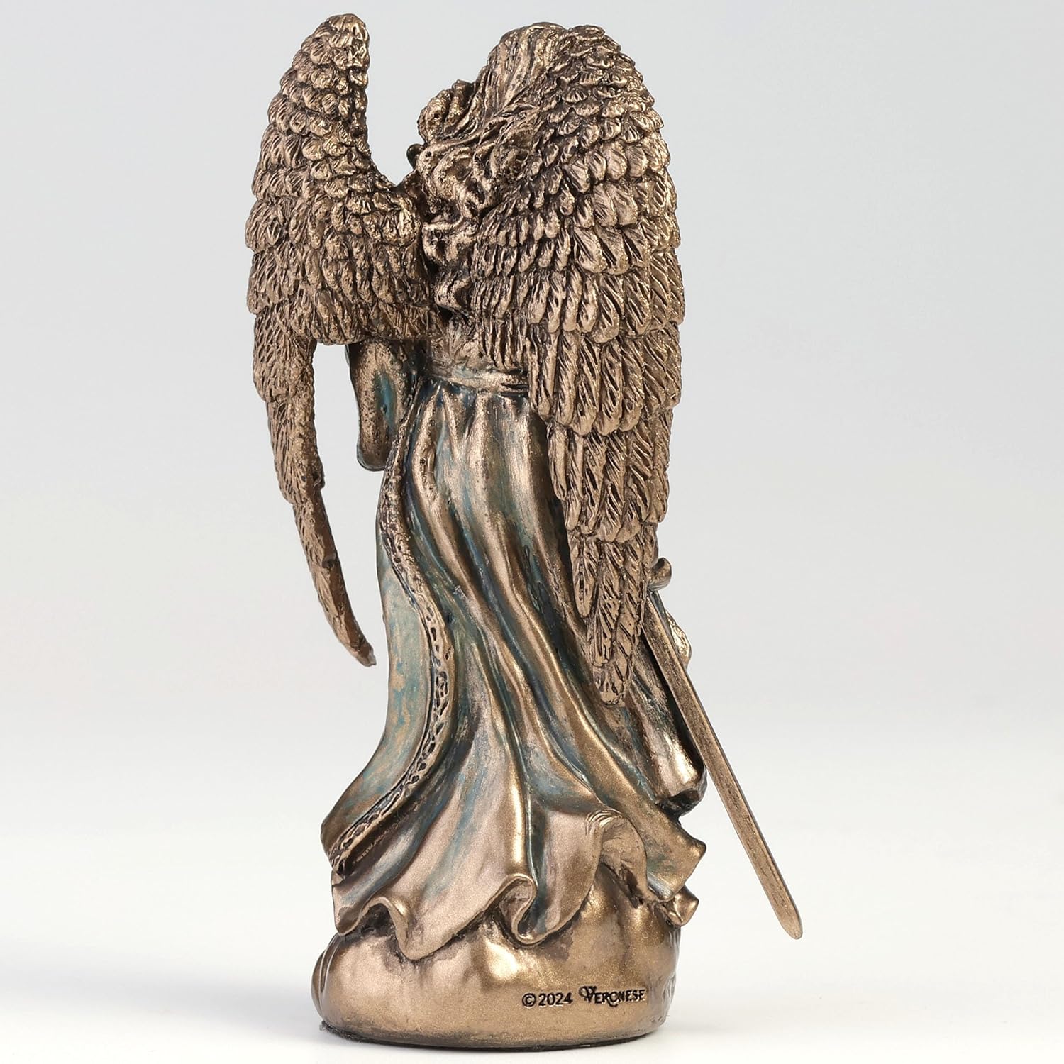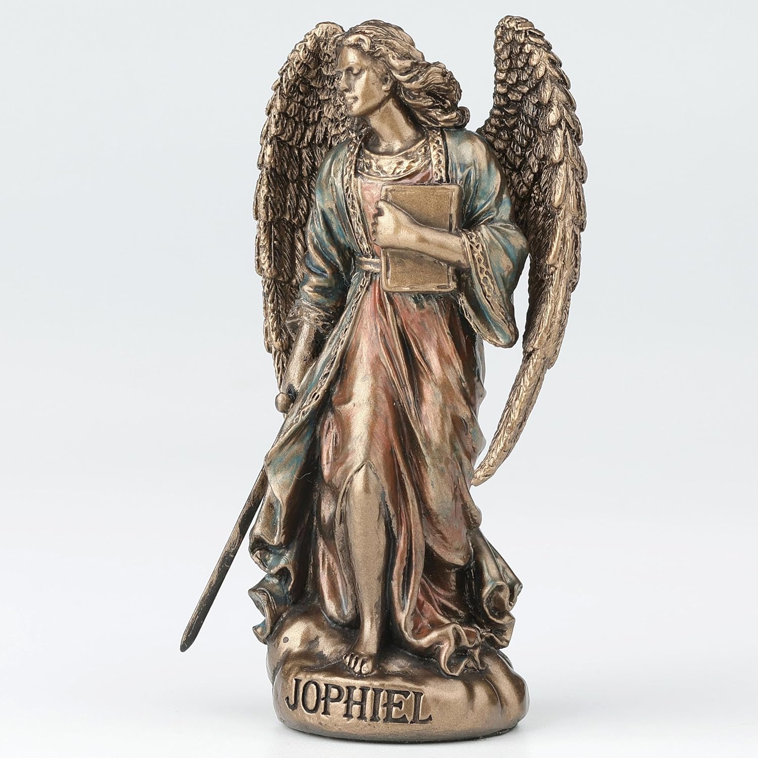 Sculpted with remarkable artistry, Jophiel is depicted holding a book of wisdom and a staff of light, symbolizing insight, clarity, and the ability to uplift the mind and spirit. Her flowing robes, serene expression, and finely detailed wings create a reverent presence perfect for any spiritual setting.