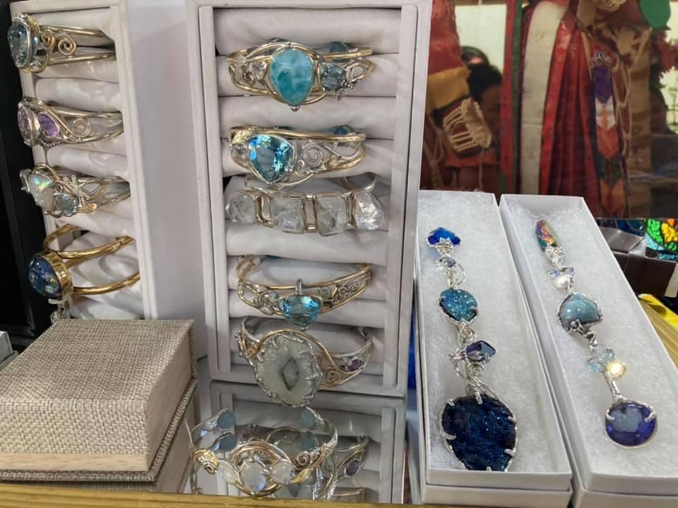 Just in time for last minute holiday shopping! Digby from Avalon Trading will be back again just before Christmas setting up an amazing Trunk Show for us. His Inspired Heart Collection is an amazing selection of jewelry including moldavite, Herkimer diamonds, Libyan gold tektite, phenacite, amber, larimar, ruby, sapphire, tourmaline and many other high vibe stones. There will be an abundance of rings to shop from! Digby will also have a beautiful selection of stained glass window hangings and magical wands. Visit the show and find that special something for yourself or your loved ones.